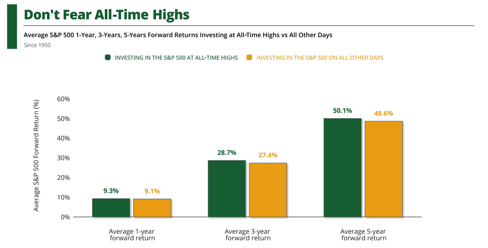 Think of it this way: if markets never reached new highs, it would mean the economy had stopped progressing altogether. New highs are not unusual.