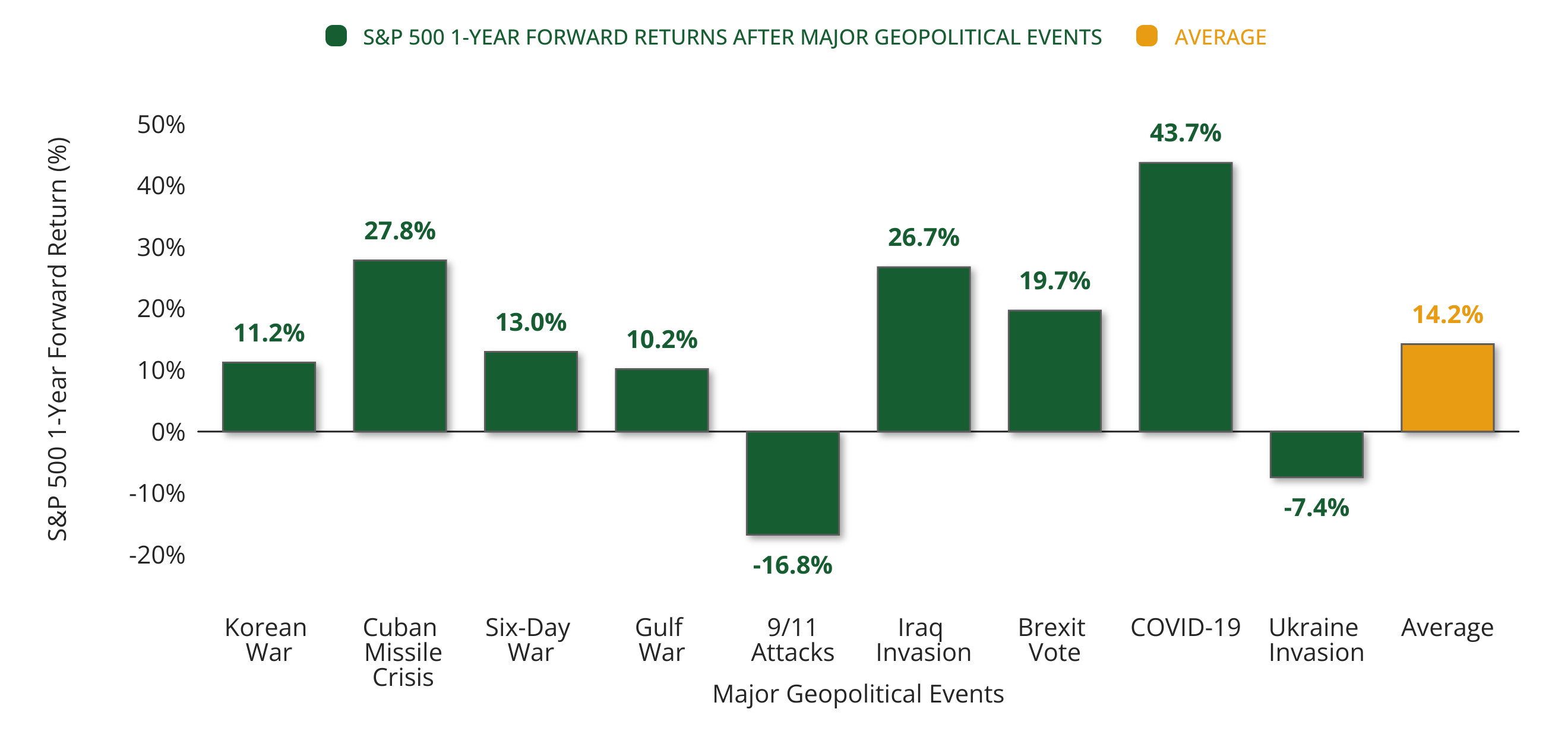S&P 500 1-Year Forward Returns (%) After Major Geopolitical Events